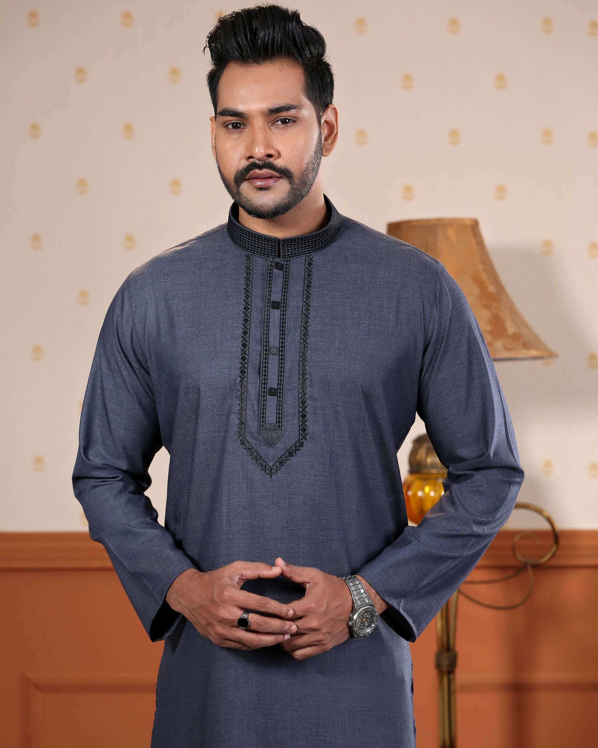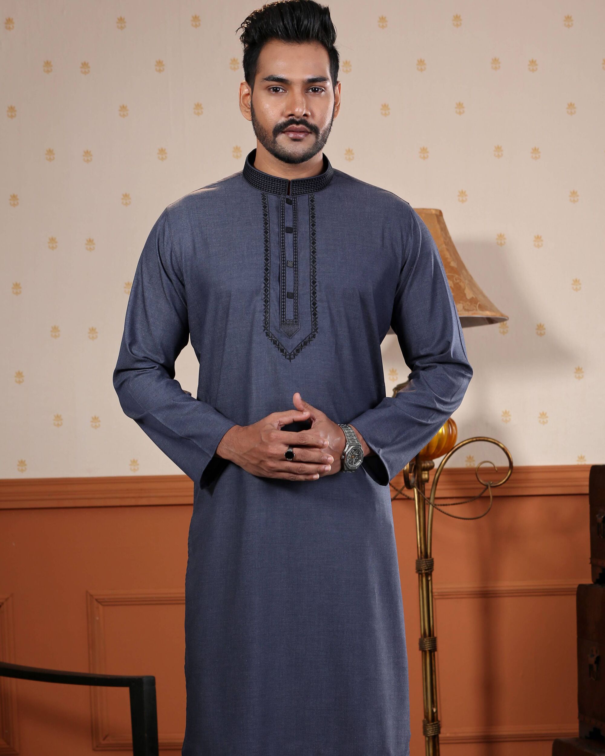 The word “Amir” means prince, prosperous, an independent ruler, or rich. YARA presents the design series “Amir” for men’s panjabi which creates a perfect impact of high status on the appearance of a person. Our carefully designed clothes ensure the wonderful experience of wearing something that fits perfectly. It is not bold but with full comfort yet style which makes you feel ‘I am what I am wearing’.