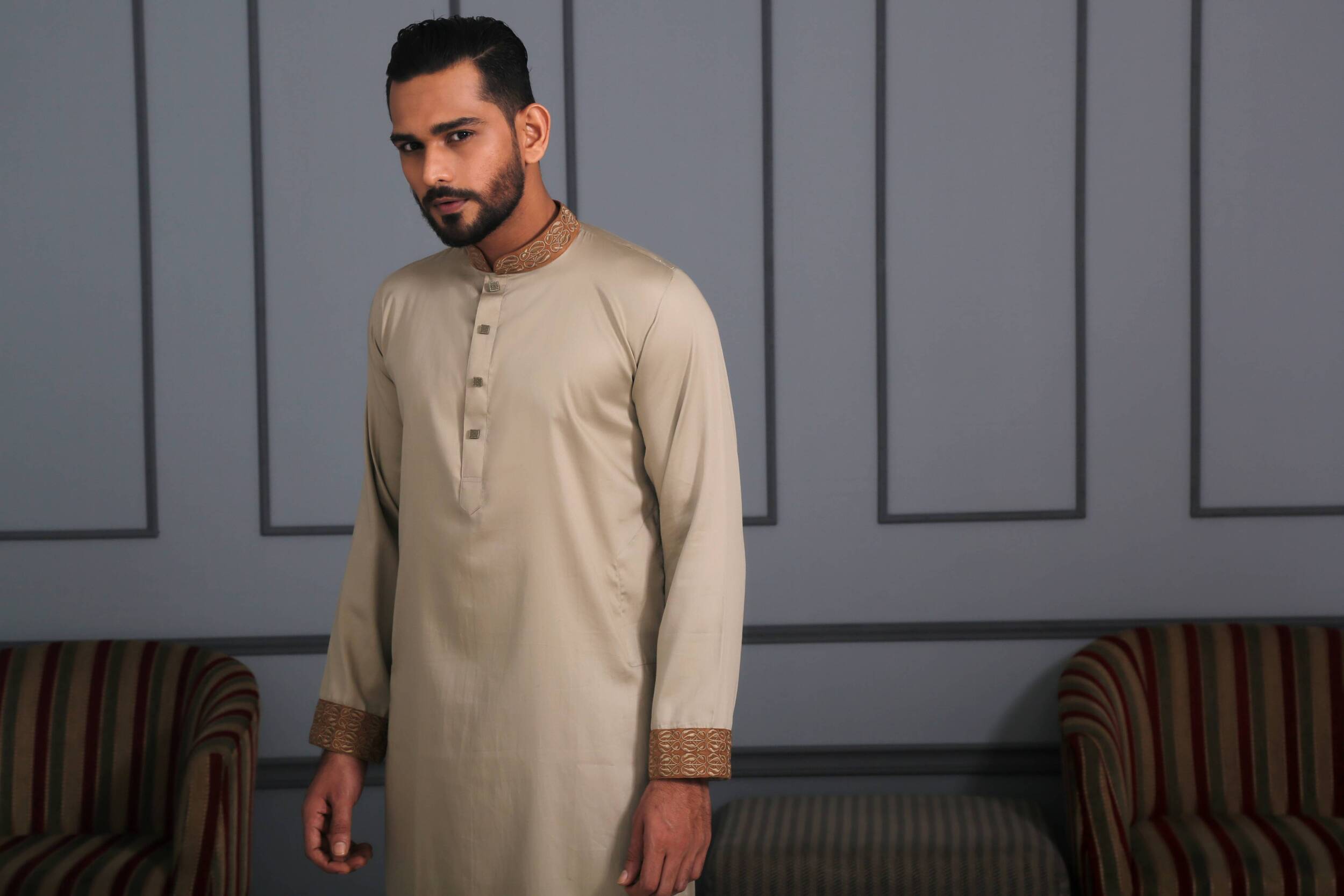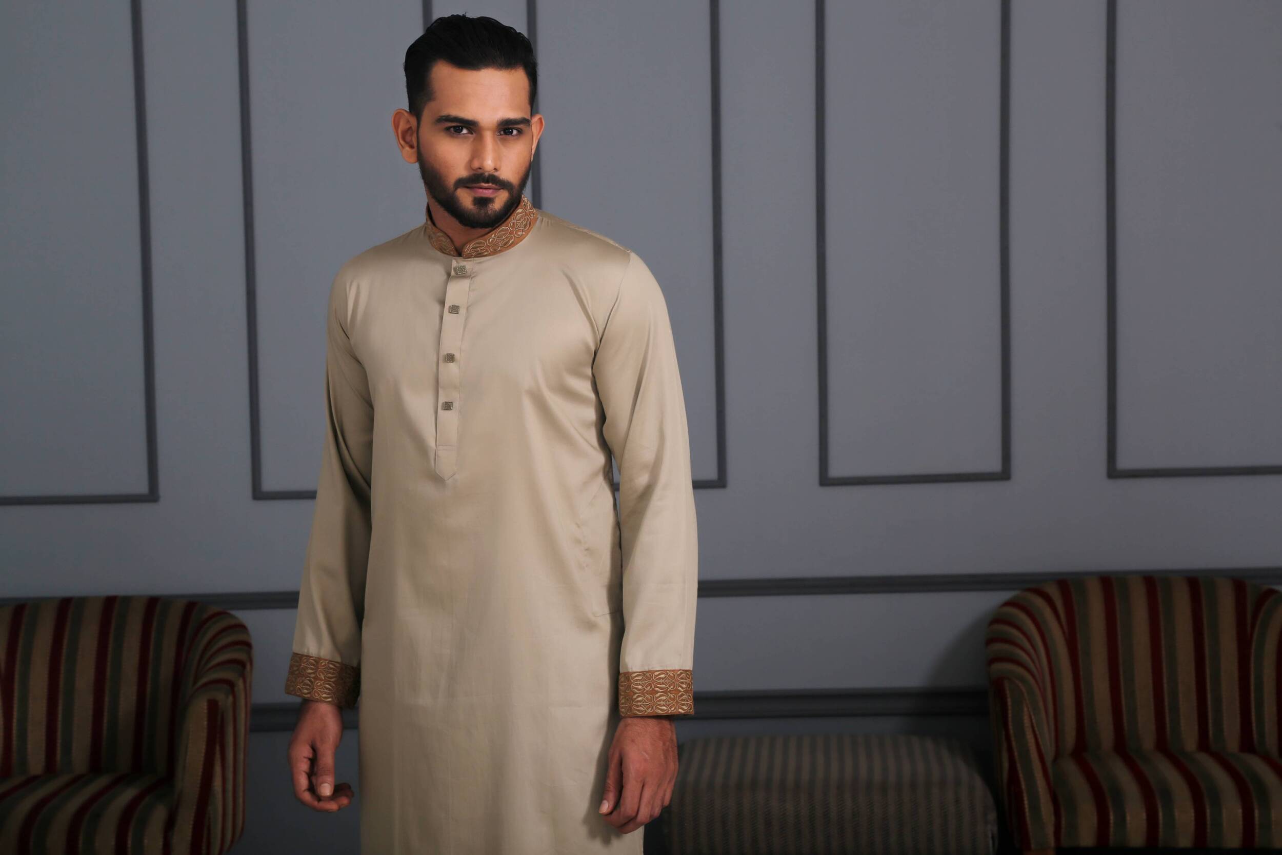 The word “Amir” means prince, prosperous, an independent ruler, or rich. YARA presents the design series “Amir” for men’s panjabi which creates a perfect impact of high status on the appearance of a person. Our carefully designed clothes ensure the wonderful experience of wearing something that fits perfectly. It is not bold but with full comfort yet style which makes you feel ‘I am what I am wearing’.